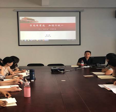 杨书记的党课标题是“学思用贯通,知信行合一”。开讲伊始,杨书记以“不忘初心、牢记使命”主题教育和习近平总书记对学习的重要论述为切入点,概述了自己党课的选题;然后结合中央要求、学校工作实际和教师工作,指导党员弄明白三个问题:“学什么、怎么学、如何用”。