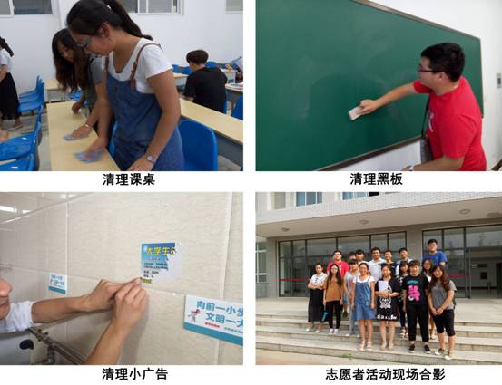 活动过程中志愿者们积极主动,对校园各个位置的小广告及教室的课桌进行清理。虽然清理难度大,任务重,但大家都毫无怨言,积极行动,发扬不怕苦不怕累的精神,争取做到最好。