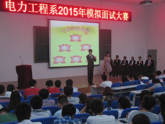 面试是老员工求职途中必不可少的流程,为增强同学们的综合素质,提高员工求职面试的技巧,提前体会职场氛围,了解单位的用人标准,帮助同学们更好的就业,6月2日下午电力工程系于西阶梯教室举办了模拟面试大赛。